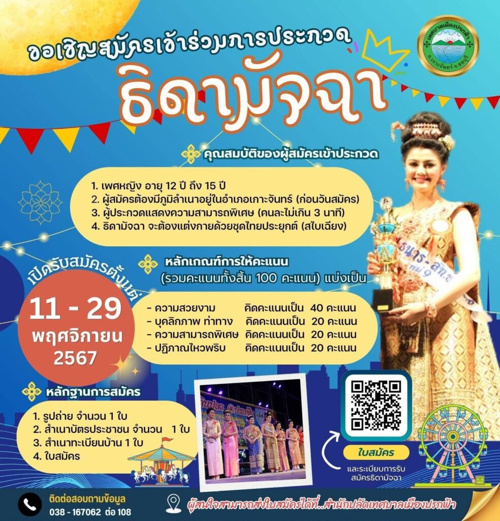 เทศบาลเมืองปรกฟ้า ขอเชิญร่วมสมัครเข้าประกวด “ธิดามัจฉา ประจำปี 2567”