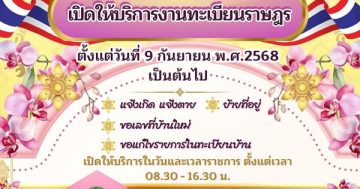 9 กันยายน 2025ขอเรียนเชิญพี่น้องประชาชนทุกท่าน..เข้าร่วมพิธีการเปิดให้บริการสำนักทะเบียนท้องถิ่นเทศบาลเมืองปรกฟ้า