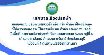 เทศบาลเมืองปรกฟ้า ขอขอบคุณ บริษัท เบตเตอร์ เวิล์ด กรีน จำกัด